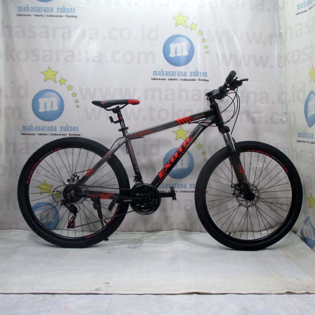 Sepeda gunung mtb dewasa 26 inch exotic 2651 terbarurp3 500 000. Sepeda gunung mtb dapat fleksibel digunakan di berbagai medan. Mulai dari shimano tourney 24 speed thumbshifter frame yang terbuat dari alloy aluminium rem cakram depan dan belakang dengan memakai sistem hydraulic dan suspensi dapat dikunci dengan model saklar untuk pemakaian di jalan rata untuk memperpanjang umur pegas. Exotic sepeda gunung sepeda mtb 26 exotic type 2658 alloy.