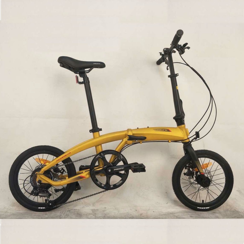 Sepeda lipat pacific warna emas. Selain menampilkan desain unik sepeda lipat pacific dibekali dengan kerangka berbahan alloy shifter shimano sora st r300 2x9 speed f r brake tektro md c400 mechanical disck brake dan ban kenda k193 20 x 1 50. Perbandingan spesifikasi komponen fitur harga sepeda review bentuk dan gambar sepeda lipat folding bike pacific noris 2 8 20. Ambil contoh pacific noris pro yang dirancang dengan perpaduan warna hitam dan emas. Selain itu sepeda lipat pacific juga dibekali dengan teknologi yang mumpuni sehingga nyaman dan aman digunakan.